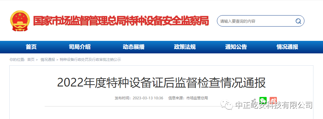2022年度特種設備證后監督檢查情況通報發表時間:2023-03-14 16:23